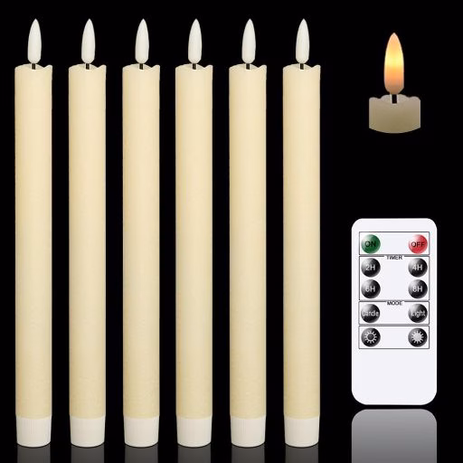 Designed to elevate any space with elegance and ease, the GenSwin flameless taper candles offer a safe and stylish alternative to traditional candlelight. Made from real wax and featuring a warm 3D flickering flame, these battery-operated LED candles are perfect for windows, dinner tables, and seasonal displays. Each set includes six taper candles and a 10-key remote with timer functionality, making ambiance effortless.