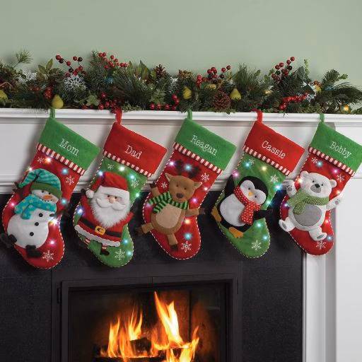 - Light-up stockings add a festive and magical touch to traditional décor.