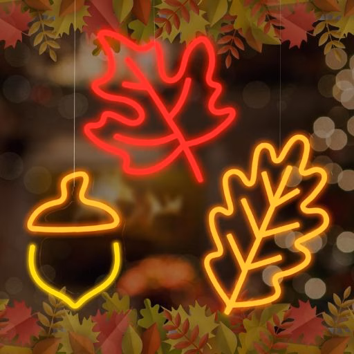 Bring autumn indoors with the ROCEEI Fall Window Lights Set — a trio of vibrant neon signs shaped like seasonal icons: a maple leaf, an acorn, and a pumpkin. Designed to glow in cozy, warm tones, these LED signs turn any room into a festive fall retreat. Whether used in windows, on shelves, or mounted on walls, the soft but colorful illumination adds a playful twist to traditional Thanksgiving or harvest décor.