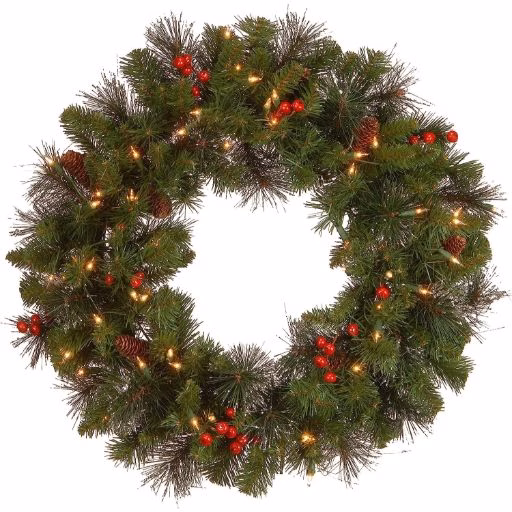 National Tree Company 24in Pre-Lit Artificial Christmas Wreath – North Valley Spruce