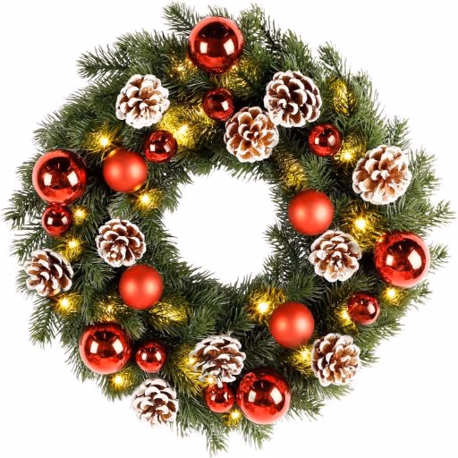 Lulu Home 15.7″ Pre-Lit Christmas Wreath with Balls and Pine Cones