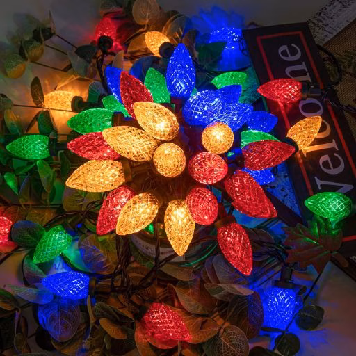 A festive favorite among seasonal decorators, the AWQ 100 LED C9 String Lights blend vintage charm with modern functionality. Stretching over 81 feet, these multicolor lights feature large pine cone-style bulbs that bring a cheerful, retro-inspired glow to porches, patios, trees, and fences. With 8 lighting modes and a built-in timer, they’re designed for both convenience and versatility—perfect for indoor or outdoor displays that sparkle through the season.