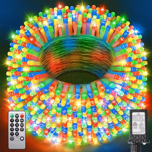 Designed for serious decorators, the JIXXULVU 900 LED Christmas lights offer impressive length, vivid color, and thoughtful features that make them a standout for large-scale displays. With 355 feet of lighted wire and an extra-long lead, they’re perfect for wrapping rooftops, fences, or trees with ease. The lights are waterproof, dimmable, and include eight different lighting modes—all controlled through a plug-and-play system that’s ready to go out of the box.